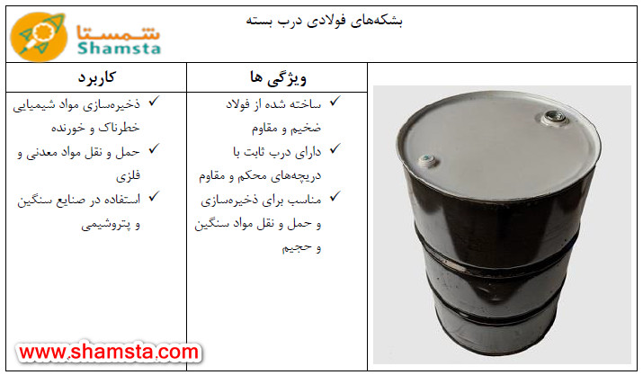 استحکام و دوام بالا: بدنه فلزی این بشکهها مقاومت بالایی در برابر ضربه و فشار دارد.