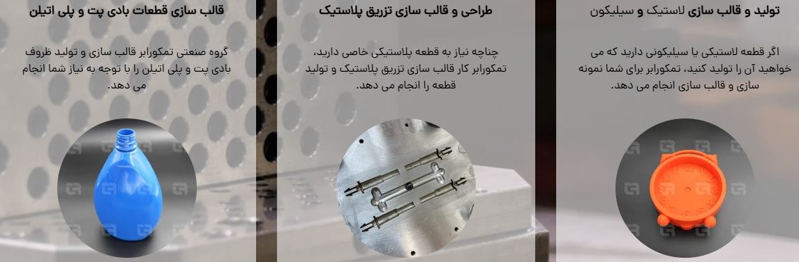 طراحی و ساخت انواع قالبهای صنعتی یکی از فعالیت های مهم این شرکت بوده که اکثر این قالبها جهت تولید قطعات لاستیکی و پلاستیکی در صنایع خودروسازی، داروسازی، الکتریکی و …. بکار می رود. در گروه صنعتی تمکو رابر کیفیت و رضایت مشتریان در اولویت می باشد.